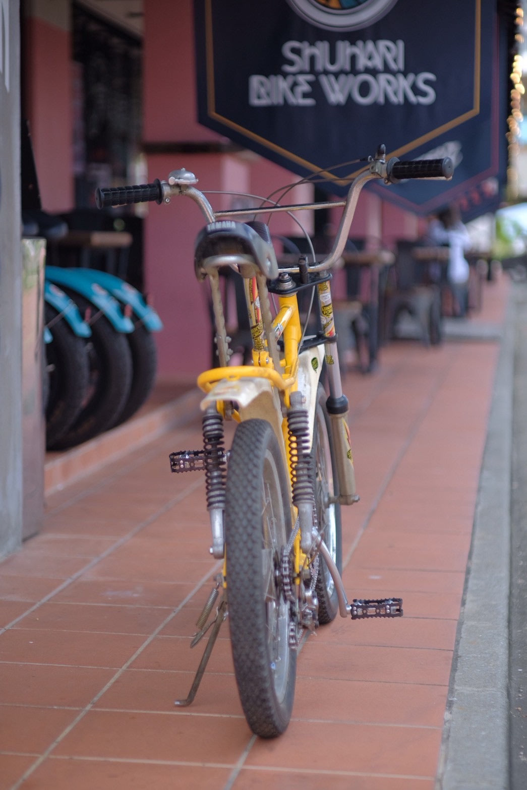1975年製のヴィンテージ「YAMAHA MOTO BIKE」をベースに、当時の純正パーツと現行パーツをMIX。SHUHARI BIKE WORKS(北谷)とLIBERTY FORCEによるカスタムモデルです。中古品、50年前のヴィンテージ品を使用していますので、傷、錆、など多数あります。ご了承ください。価格は送料込みのお値段になります。